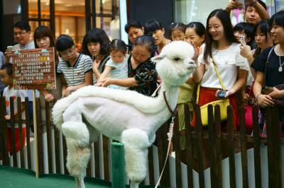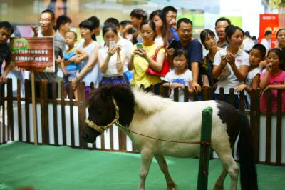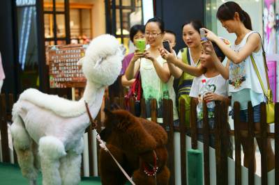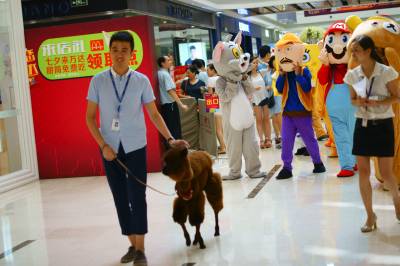 8月2日,宜昌万达广场举办七夕嘉年华活动。现场上演真人版铜人秀、人体彩绘、动漫玩偶及动听的爵士乐等,还有可爱的羊驼、小矮马、小香猪等小动物及现实版的开心农场,吸引众多市民和顾客驻足观看。本报视界网 周建平 摄