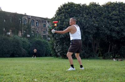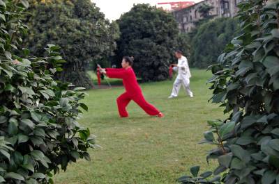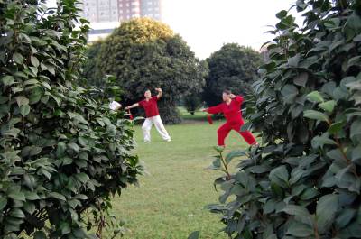 2014年8月3日,市民在云梦县政府广场晨练。晨练,成为市民日常生活的一部分,成为城市的一道风景。视界网 陈保忠 摄