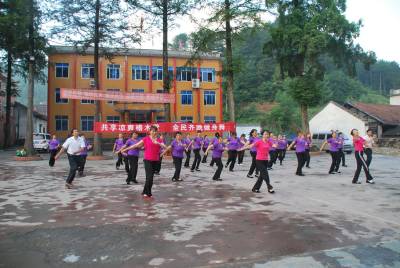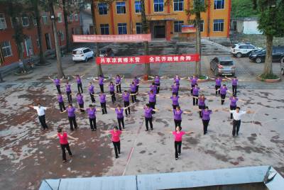 在教练的指导下,他们伴随着音乐的旋律,迈着欢快的步伐,翩翩起舞,展示了高山农民绚丽多彩的风貌,整个广场沉浸在一片欢乐的海洋。中老年人踏着悠扬的乐曲频频起舞,好像又回到了年轻时代,年轻人更是生机勃勃,舞动青春。笔者目睹了这一感人动人的场面,不时地拿起相机咔嚓咔嚓的记录了这一难忘的瞬间。
