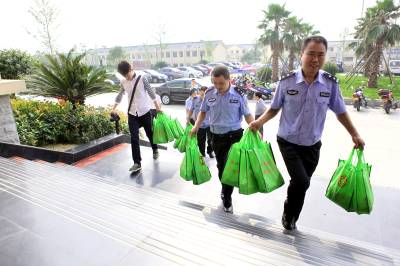 8月4日,中共秭归县县委常委、纪委书记、总工会主席黄海同志,带领县总工会工作人员, 给秭归县公安局交警大队送去“防暑袋”,让高温下执勤的交警人人拥有“避暑六样宝”——“雇香正气水”、“风油精”等6种防暑解暑之物。酷暑高温时节,秭归县总工会精心筹备装有“避暑六样宝”的“防暑袋”,组织工作人员向环卫工、路面执勤交警等高温下的劳动者上门免费发送,成为夏日里贴心关爱的“特别清凉”。