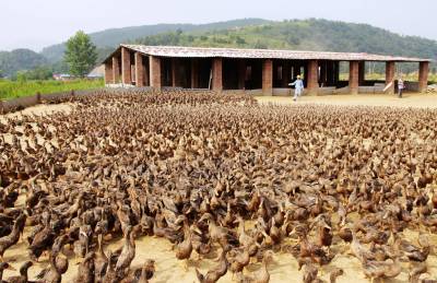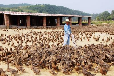8月4日,竹山县宝丰镇喻家塔村一家庭农场员工正在喂养鸭子。今年以来,该镇财政、工商、农业、林业、畜牧业等部门紧密协作,重点扶持当地从事种植业、养殖业等个体工商大户和农民专业合作社向家庭农场转型升级。截至目前,全镇家庭农场已发展到18户,注册资本共计千万余元。在家庭农场的示范、带动下,全镇农户纷纷尝试适度规模种养,涌现出100多个农村经济示范大户。