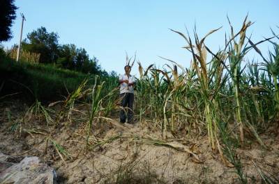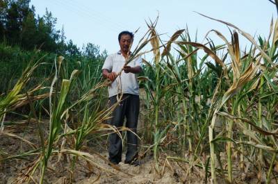 8月4日,郧县城关镇堰河村5组村民王二牛在地里拔起一棵干死的玉米杆说这地里不会在有粮可收了。由于去冬至今郧县没有下过一场透雨,江水也没有浑过一次,加上持续高温大部分堰塘干涸见底,所有坡地上的玉米、花生、红署不是干死就是减产,目前干旱还在继续持续。 夲报视界网周家山 摄