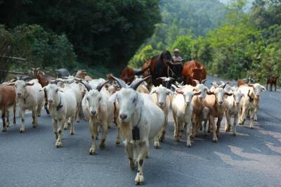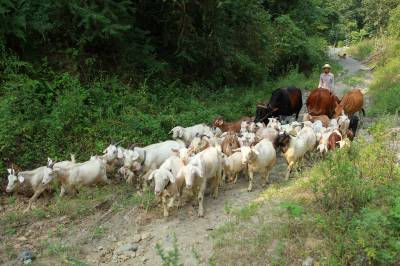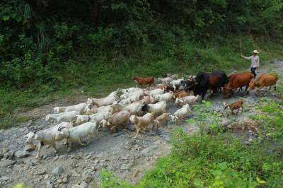 家庭农场拓宽山区群众致富路 8月5日,竹山县文峰乡塘湾村7组村民肖模华在放牧牛羊。近年来,该县出台多项优惠政策,扶持农户建立家庭农场,养殖羊、牛、猪、鸡等畜牧业,拓宽山区群众致富路。(视界网 章磊 摄)