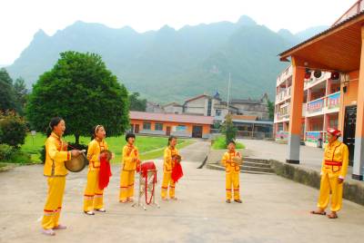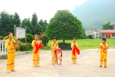 8月4日,鹤峰县走马镇白果小学的学生在湖北省“非物质文化传承人”苏国民的指导下,学习打围鼓。 暑假期间,该县各学校结合实际,组织学生积极开展学习当地民间非物质文化遗产,保护和传承民族文化,为建设 “一校一品”特色校园文化打下坚实基础,同时丰富中小学生假期生活,让孩子们度过一个有意义的快乐暑假。