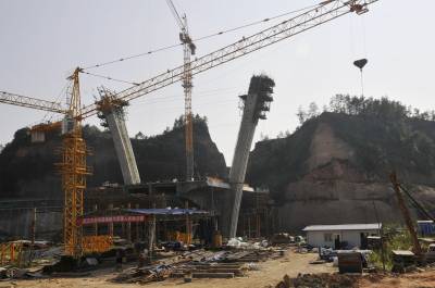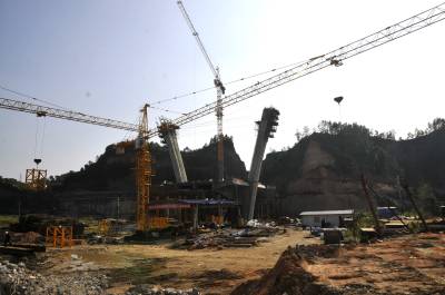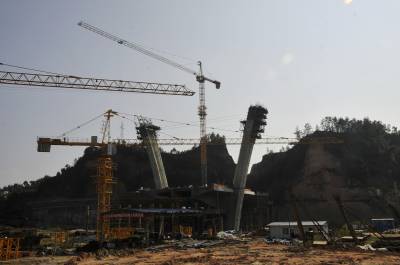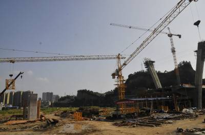 恩施州城跨清江第九桥 8月4日,位于恩施州城的金山大桥施工现场一派繁忙。 金山大桥是恩施市城建重点工程项目,是连接旗峰大道与金桂大道的控制性工程,也是恩施州城跨越清江的第九座桥,全长280米,主跨为110米。该项目自2012年12月开工,目前已完成货币工程量5000万元,预计年底可实现合龙。(视界网张艺馨摄)