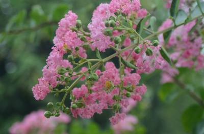 紫薇(Lagerstroemia indica L.),又称痒痒花、痒痒树、紫金花、紫兰花、蚊子花、西洋水杨梅、百日红、无皮树等,系千屈菜科落叶灌木或小乔木,产于亚洲南部及澳洲北部。紫薇树姿优美,树干光滑洁净,花色艳丽;开花时正当夏秋少花季节,花期长,由6月可开至9 月,故有“百日红”之称,又有“盛夏绿遮眼,此花红满堂”的赞语,是观花、观干、观根的盆景良材;根、皮、叶、花皆可入药。