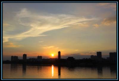 落日熔金映古宅