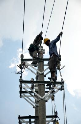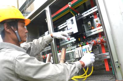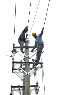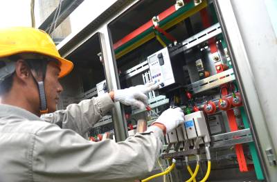8月6日,巴东县官渡口镇供电站外线技术员在核桃园村供电台区检查线路、紧高压线。 连日来,持续高温,该供电站外线20多名技术员,克服高温天气,分片到人,检查高低压、台区线路,及时排除故障,应对高温用电高峰期,确保居民生活、烤烟正常用电。巴东县官渡口镇政府 向传辉 摄 电话:18963928551