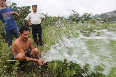 远安遭遇60年一遇的旱情。各乡镇和县直相关部门和积极发动和组织干部群众全民抗旱、全力抗旱。在灾情较严重的茅坪场镇老观村,村民自发请挖机找水源,购买抽水设备投入抗旱自救。(温宜飞)