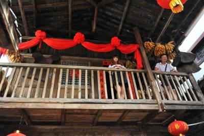 8月7日,青年男女在湖北恩施女儿城的吊脚楼里寻觅自己的意中人。
