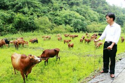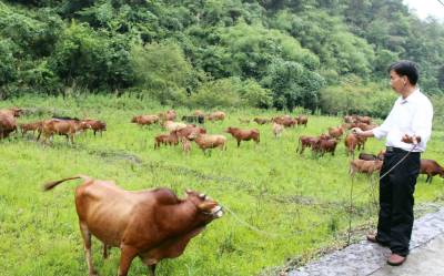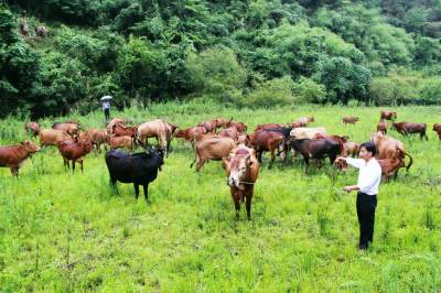 8月7日,竹山县大庙乡全胜村二组养殖大户全恒坤正在放羊郧巴黄牛。郧巴黄牛属竹山县地方优良品种,已成功注册了郧巴黄牛地理标志。近年来,该县实行种草养畜、舍饲圈养等科学养殖方式,提高养殖效益。目前全县郧巴黄牛存栏6万余头,存栏10头以上300多户,存栏20头以上200多户、存栏50头以上80多户,存栏100头以上12户,规模养牛场达到18家。