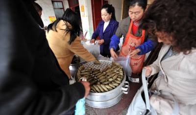 21日,宣恩县椒园镇白泥坝村1组村民邹同心的包谷粑粑店前,人们争抢着买刚刚出炉的苞谷粑粑。几年前,邹同心开始用包谷试着做包谷粑粑卖,不想生意竟格外好——因为紧挨209国道,来来往往的人们把包谷粑粑带到重庆、湖南等地,因此店里每天都能够卖出1万多个,即便是在淡季,每天至少也得卖出五、六千个。据老板测算,按照现在市场价格,一斤包谷做成粑粑后出售,已等于甚至超过一斤猪肉的价格,包谷也因此增值至少4倍。把包谷通过简单加工,其增值空间居然如此之大,这应该给农副产品的销售以启迪。特别是恩施地区,因山大人稀,农产品又有着绿色、无污染的优势,一方面高速、铁路通了,要考虑山外的人为什么来、带什么走的问题。另一方面,能够给人留下印象的、能够让人喜欢并记住的土特产就是好东西,抢抓机遇让山区特色食品、特色小吃走出山外,应该是当地党委政府在新的信息、交通环境下应该承担的又一职责,因为:一个粑粑也可能带动一个产业、带活一方经济。(视界网签约摄影师:宋文摄)
