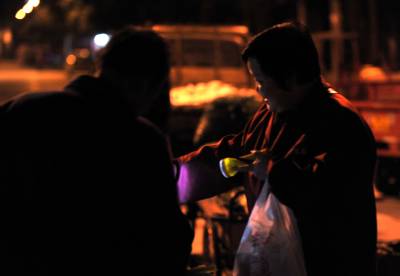 23日凌晨发生在宣恩县城区蔬菜批发市场的一幕幕。这些镜头无论是冰雪交加的冬天、还是狂风暴雨的夏日,每天都在人们身边发生。自凌晨3点钟就开始”交易”的人们,一方面在为自己的生存而披星戴月,而另一方面,他们则是在此”经营城里人的生活”——没有他们的早起,可能就没有城里的”早餐”。(视界网签约摄影师:宋文摄)
