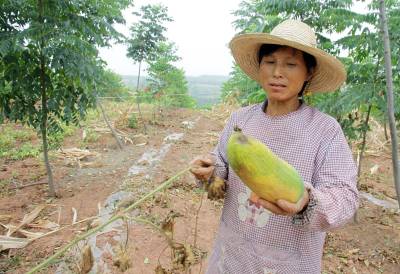 图二:看着枯死的冬瓜,梁福秀欲哭无泪;