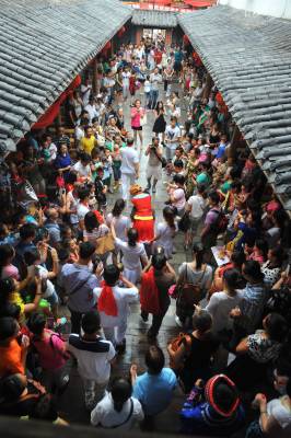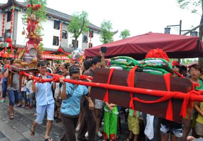 8月11日,轿夫抬着精美的嫁妆前往新郎家。