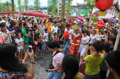 近日,以土家族传统婚俗为背景,全面展示土家婚俗文化的大型土家族传统婚俗情景剧在湖北恩施女儿城上演,上演以来,每天吸引了上千游客观看。