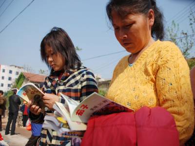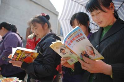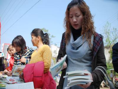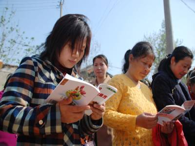 23日,黄冈市黄州区路口镇路口村村民正免费看书。当日,黄冈市黄州区在路口镇举行首届”农家书屋伴我行”读书活动。该区实施”免费看书工程”,向各乡镇发放农技图书万余册,通过科技讲座、征文比赛、读书心得报告会等多种途径激发农民朋友读书用书兴趣,在全区掀起全民读书热潮。