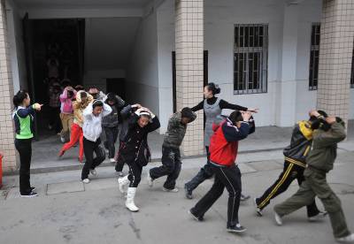 4月23日,随州市曾都区聚奎们小学举行第4次地震逃生演练,全校1400余名学生仅用时2分47秒全部迅速有序撤离到学校操场中央,比第一次演练快乐2分多钟。玉树地震发生后,再次敲响了学校安全教育的警钟,聚奎们小学多次组织学生开展消防、地震逃生等演练和教育,以提高学生的安全防范意识和能力。