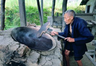 在鄂西土家山乡恩施土家族苗族自治州宣恩县李家河乡箭竹坪村,仍保持一套古老完好的百年手工榨油坊。这座榨油坊榨油沿用“火炒、石碾、火蒸、包饼、排榨、槌撞”等工序,其加工工艺独具民族特色。