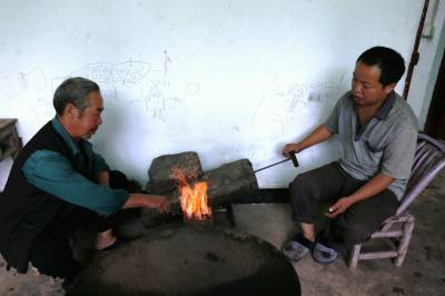 “陈补锅”一边擦汗,一边谈起了补锅这一行的兴衰:记得在物质匮乏的年代,家家户户做饭菜、煮猪食都是用铁锅,一般的人家是不会把破损铁锅扔掉的,常常是补了又补,疤上重疤。每逢赶场天,“陈补锅”两口子在街上架起两套炉子还忙不赢,一天下来要收入几十块钱,相当于现在的几百元。随着生活水平提高,农村做饭做菜改用高压锅、电饭煲、电磁炉等,只是煮猪食还用铁锅,再后来随着养猪食料熟改生的普及,农村用铁锅的更少了。街上补锅生意冷清,“陈补锅”有时也窜一窜乡,因为还有少数农家需要“陈补锅”,而陈补锅“也舍不得丢了老本行。