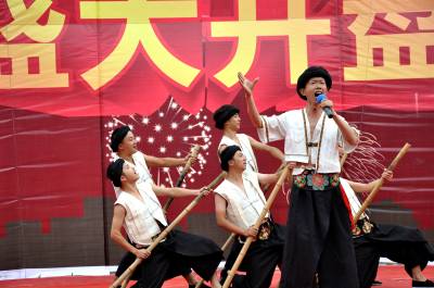 当天,正值新塘乡实施“双轮驱动”城镇化建设的重点项目——硒源小镇开盘盛典之日,市非物文化展演中心以“党的群众路线教育实践活动”为主题,送戏下乡到新塘,为双河社区居民送上一台丰富多彩的精神文化盛宴。情景歌舞《群众路线暖人心》、民歌联唱《家乡美》、小品《人情》《拆迁难》、歌舞《清江放排》、快板《党政社风绽新颜》、独唱《中国美》、合唱《放飞中国梦》等16个群众喜闻乐见的精彩节目,一次次把活动现场推向高潮。押韵对仗的唱词、优美委婉的歌声,让群众在轻松愉快的氛围中,增进了对党的群众路线教育实践活动主要内容的了解。