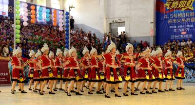 8月15日,以“文化力量.民间精彩”为主题的“黔龙阳光地产杯”来凤县摆手舞大赛经两天预赛后在县体育馆举行决赛。来自全县各乡镇、各行业的42支代表队经预赛后的17支代表队最后进行决赛。来凤是全国第一个土家族自治县,也是摆手舞的发源地。湖北省第八届少数民族传统体育运动会暨第二届来凤.中国土家摆手舞文化旅游节将于今年十月在来凤举办,并新增摆手舞比赛。该县以“摆手庆丰收”为主题,以原生态摆手舞为基础,编排了一套有利于人体身心健康、促进人体全面发展的全新摆手舞在全县普及并已向全省推广。