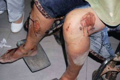 据伤者刘长瑞介绍吃完晚饭6人相约到汉边散步,当走到郧县一中位置时,一辆白色越野车突然从对面路囗倒过来冲上人行道撞倒银杏树,我们大人夲能的将两个女孩子推开,我被撞倒,车子从王春双腿上轧过,撞断1.5米高的大理石拦杆掉下江堤,交警接到报警迅速赶到救护伤者并将伤者送到医院救治,消防官兵也赶到现场实施救援。擎事司机冯某与另一人被交警控制,并抽血化验是否醉驾,并接受调查。目前伤者王春伤势较重,头部有一处近10公分伤口,双腿伤势较重,目前在郧县医院救治,此案正在调查之中