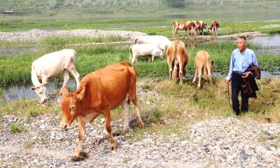 草丰牛儿壮 8月15日,冷集镇塔湾村农民正在滩涂上牧牛。谷城县冷集镇鼓励、支持、引导农民发挥山场、滩涂面积广,草场资源丰富、市场商品牛肉价格好、紧俏的优势,科学引进、繁育、饲养优质肉牛,丰富了城乡居民的菜篮子,农民也因此有了丰厚的收入。 视界网马明刚摄