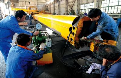 修旧利废降成本23日,黄石市十五冶汽车修理厂员工正在调校45米长的德国100吨汽车吊臂。本月初,十五冶金建筑公司从德国进口的汽车吊出现故障,如果送到国外修理费用极高。为节约成本,汽修厂主动承担修理任务,他们利用部分国产零部件替代进口零件,经过测试,国产零部件达到质量要求,为公司节约修理费70余万元。黄石市黄石日报摄影部邱孝威罗三玲摄电话:13807232603邮编:435002