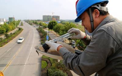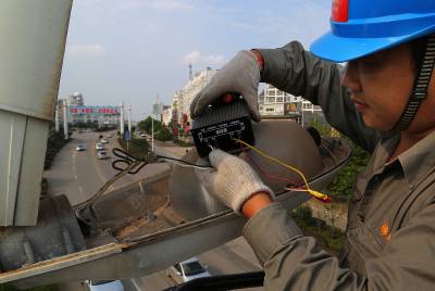 8月15,供电人员在嘉鱼县发展大道上,对新安装的节能型路灯进行调试。今年来,国网咸宁市供电公司对各个县市区主干道路灯进行改造,近千盏节能型路灯的启用即将完成。这些路灯均采用绿色环保灯型,不仅节省电量45%以上,并能消减频闪所致的光污染。(詹文峰 张涛)