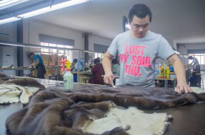 8月18日,云梦县皮草产业园的湖北雨蒂斯诺皮草服饰有限公司生产车间一派红火、忙碌的景象,工人们正加班加点赶制销往俄罗斯、欧美等国际市场的皮草服装。雅宝城皮草云梦产业园是湖北省重点项目,于2012年4月正式落户云梦,总投资30亿元,规划总面积2500亩,现有41家皮草企业落户。据悉,该产业园全部建成后,将成为中南乃至全国最大的皮草外贸出口生产、加工、销售基地。今年上半年,云梦县出口创汇2655.5万美元,同比增长785.5%。其中,仅皮草产业园出口创汇就达2344.3万美元。