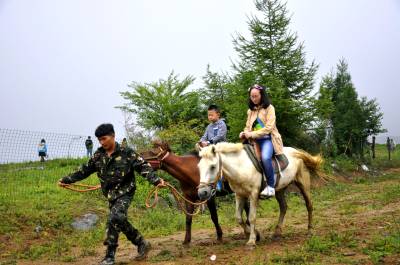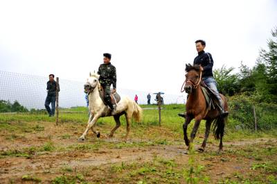 野外露营饕餮盛宴 8月18日,在宣恩县椿木营乡岩板坪旅游基地,驴友正在“草原”骑马户外运动。 当日,恩施州宣恩县椿木营乡岩板坪旅游基地举办了第二届帐篷露营节,来自恩施州内外的户外运动、驴友等约5000人,参加了追牛赶羊、“草原”骑马、骑车探险、篝火狂欢等欢乐项目。还可以席地而坐,品尝当地特色烧烤羊肉。(视界网彭绍峰摄)