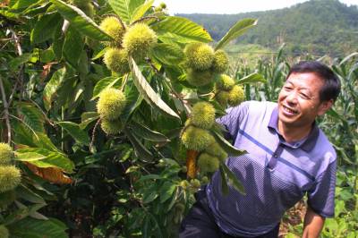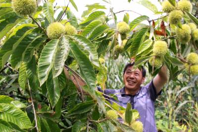 8月19日,竹山县宝丰镇龙井村四组农民张生超看到硕果累累的板栗,高兴地合不拢嘴。近年来,该县坚持抓定位、抓基地、抓技术、抓政策、抓科研、抓企业、抓市场、抓效益,稳步发展以板栗、茶叶、肚倍、核桃等为主的林特产业。目前,全县林特基地面积发展到70余万亩,林业产业收入6亿余元,户均林业收人800元以上,特色产业收入占农业总收入的60%以上。