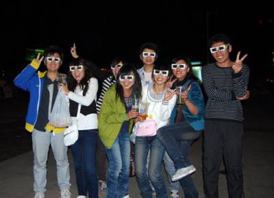 4月23日晚,几名青少年戴着3D立体眼镜在恩施州民族广场合影留念。当晚,恩施州首次放映3D特效科幻动作大片《阿凡达》,受到市民的青睐,不少家长带着孩子前去观看。人们佩戴着3D立体眼镜观看影片,感受着高科技给人们带来的视觉体验。
