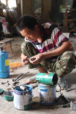 丹江口市牛河林区李家山村44岁的农民谭勇一直有个梦想,自己动手做一艘“潜艇”,可以让每个人都有机会到水下去看看。这个想法直到今年2月才付诸行动。只有初中文化,且不懂专业知识的他,凭着一股子劲儿,花5个月时间打造了一艘2000多斤重的“潜艇”。不久前在一处水面进行首次下潜,结果以失败告终。尽管如此,但他并不气馁,决定继续努力。眼下,正在积极改良,争取早日把潜艇造出来。(视界网 章新俊)