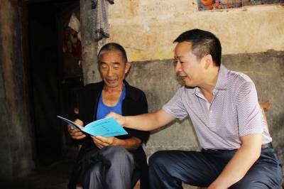 8月20日,竹山县司法局副局长郑海盛(右)深入溢水镇五房沟村绿松石矿区农户家中,为村民发放《“六五”普法法律知识进矿区知识问答》读本,并现场解答法律疑问。连日来,该局深入秦古、溢水绿松石重点乡镇所辖的16个村组,将3000本《“六五”普法法律知识进矿区知识问答》读本送到群众手中,营造学法知法守法用法的良好氛围。