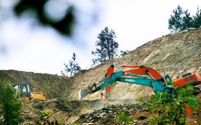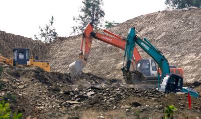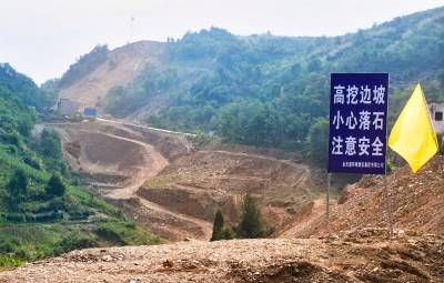 346国道是东部和西部大通道,施工单位必依照甲方规定——保证原有道安全畅通前年下施工。图为8月15日摄于改扩建路段楸木垭施工现场。楸木垭切方高达80000余立方米填筑楸木垭两端改扩建路基。建成后的楸木垭路比现有的路下降10米,改变原楸木垭路两端陡上陡下的道路环境,改建后的楸木垭路垭子高程达70余米(视界网温大树摄)。
