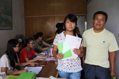 8月22日,家住丹江口市龙山镇长沟村一组的女孩王小凤和父亲一起展示刚刚签定的《借款合同》。她今年从丹江口市二中毕业,被汉口学院广播电视编导专业(本科)录取,妹妹去年开始读中专,全家8口人,经济负担重,这次办好了助学贷款,解决了筹款升学难题,一家人悬着的心终于放下。