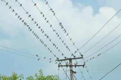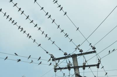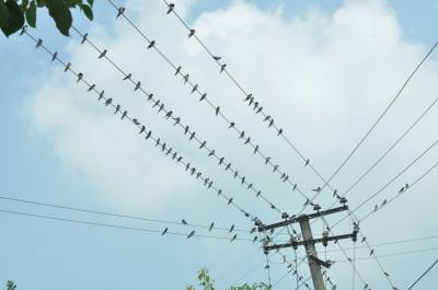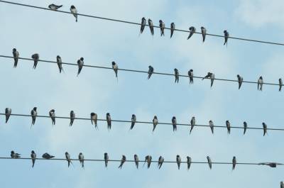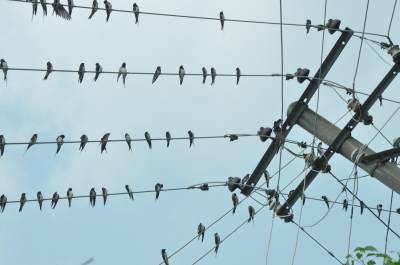 2014年8月20日上午,在红安县七里坪镇典明村公路边的电线上栖息着成群的燕子。据当地村民讲,每到傍晚时分都在成千上万只燕子在这里栖居。近年来,随着人们爱鸟护鸟意识日益增强和自然环境的改善,前来这里繁衍后代的燕子也越来越多,它们在这小山村安心觅食、繁殖,颇为壮观的鸟景,构成了一道独特而亮丽的风景线。本报视界网耿红元摄