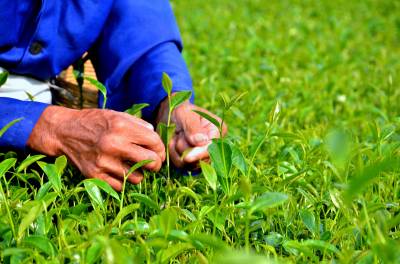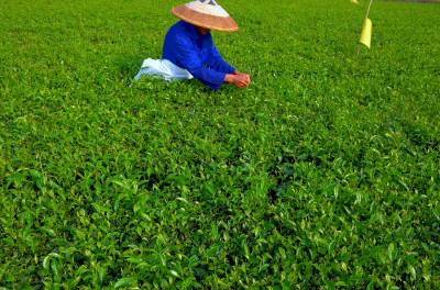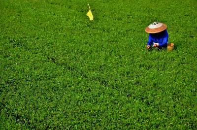 2014年8月21日,湖北省宣恩县椒园镇水田坝村茶农在有机茶园采摘秋茶。当地有机茶、绿色无公害茶种植理念深入人心,茶农通过精细化的手工采摘,提高秋茶质量。