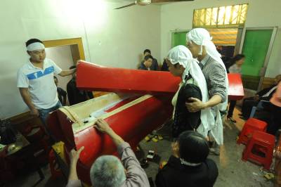 屈乡红棺葬的风俗历经千年传承,沿袭至今。但近些年随着整个社会富裕程度的不断增加,红棺葬的形式也略有变化,最明显的是红棺外面再罩上红色金丝绒棺罩。