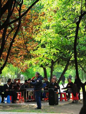 群众文化生活丰富多彩4月23日,许多市民正在宜昌滨江公园自娱自乐。春日暖阳,宜昌城区滨江公园里的群众文化活动丰富多彩,一支支由市民自发组成的文艺表演队在这里即兴表演节目,成为沿江一道和谐的画面。本报视界网黄翔摄