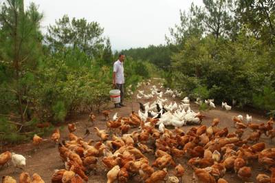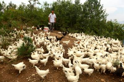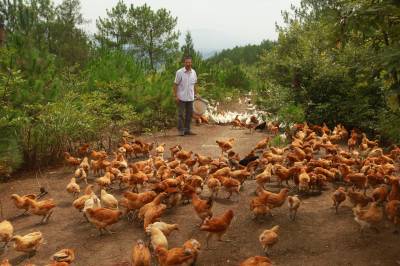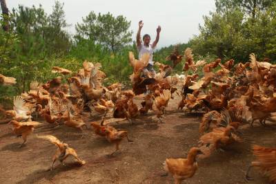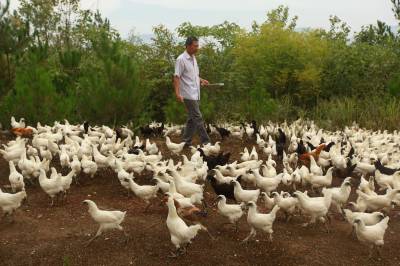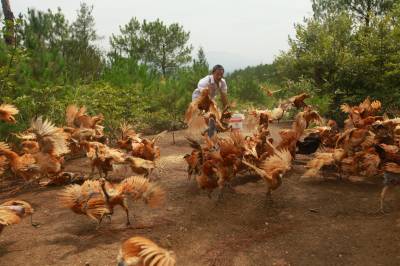 大学生回乡创业山林养乌鸡 8月25日,竹山县秦古镇独山村大学生张斐然在管理乌鸡。张斐然大学毕业后回到家乡,特意把养殖场选在了自家山林中,建起5000多只乌鸡、郧阳大鸡养殖基地。“创业之路很难很辛苦,但只要沉下心,脚踏实地坚持走下去,我一定会走出自己独特的人生。”谈起下一步的发展,张斐然看着眼前活蹦乱跳的乌鸡信心十足的说。(视界网 章磊 摄)