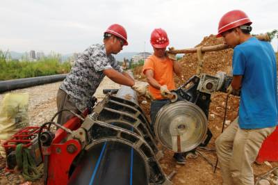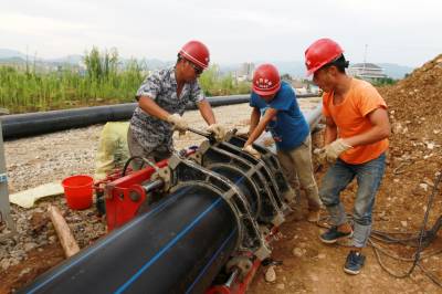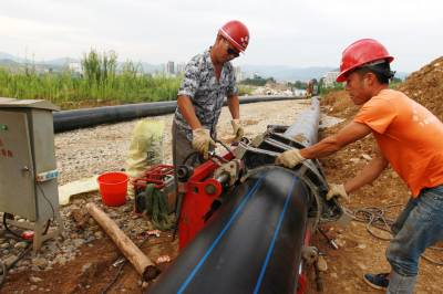 8月24日,房县正在安装城区三海水厂至唐城路自来水主管道。该县针对城区向城郊空间拓展延伸,城市人口不断膨胀,部分供水管网老化,造成水压低、供水不稳定的民生问题,这个县将此项工作纳入党的群众路线教育活动案例,予以及时整改,确保自来水流到市民家门口。目前,投入专项资金713万元,铺设6.5公里的供水主管网。工程建成后,县城城南供水条件得到大大改善。据悉,此项工程供水管网建设预计于今年11月底完工。