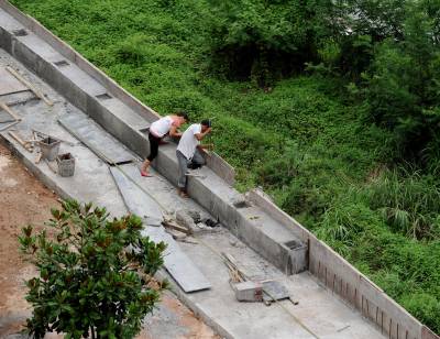 8月25日,恩施市城区亲水走廊六期工程红旗大道段,工人正在对沿河的护栏基础进行加固。 近年来,恩施市沿着清江城区段沿线建设亲水走廊,目前已开始六期工程施工。六期工程包含防洪堤、道路、绿化等,概算总投资近2亿元。据了解,六期工程完工后,恩施山城沿清江将形成10余公里的环形亲水走廊,成为市民戏水休闲、观光游乐的滨江景观带。视界网 王波 摄
