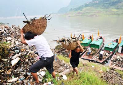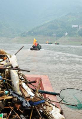 随着长江三峡库区进入主汛期以来,大量来自长江上游及支流的垃圾漂浮物涌入库区,三峡库区沿线各区县的长江清漂队纷纷加大清漂力度,有力地保证了长江航运和库区的水环境安全。据了解,三峡库区湖北省巴东县的清漂队平均每天出动10余只机动清漂船,对宜昌接壤的牛口至重庆交界的鳊鱼溪40余公里长江主航道及5A级国际旅游景点神农溪等支流水面垃圾清漂作业,日均打捞漂浮物20余吨,并对打捞起来的漂浮物采取集中堆放、晾干、焚烧处理。(视界网 梁勇 梁斌 摄)手机:13986846069/地址:巴东县官渡口镇财经所/邮编:444309