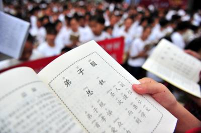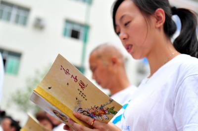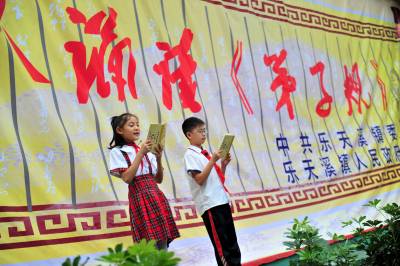 据悉,诵读《弟子规》是乐天溪镇近年来开展的“感恩行动”子活动之一,以此来倡导移民群众养成忠厚家风,让大家在潜移默化中遵守待人接物的礼仪与规范。目前,该镇诵读《弟子规》活动已实现进校园、进企业、进机关、进家庭全覆盖。本报视界网 张国荣 摄