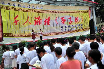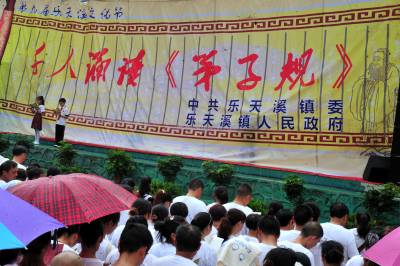 2014年8月26日,三峡工程坝区门户宜昌市夷陵区乐天溪镇为期三天的第九届文化节简约开幕,当地1000多名三峡工程移民群众运动员入场后,在不到半个小时的开幕式上,仅安排了朗诵《弟子规》一项议程,把节约出来的时间让移民群众尽可能多地参与“背媳妇”、“同心协力”、“扛化肥”、“摩托车慢骑”、“健身腰鼓”、“拔河”、“垂钓”等20多个项目的比赛,享受趣味运动带来的乐趣。
