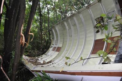 两块疑似火箭整流罩残骸掉落恩施山林 8月26日,一个疑似火箭卫星整流罩的巨型物体,被恩施市沐抚办事处前山村街平组村民发现,并向沐抚办事处报告。笔者在现场看到,该残骸掉落在山林中有两部分。较大的长约9米,宽约3.5米,呈半圆状,外形似小船;较小的长约2.5米,呈锥子型,上面有固定支架。目前,当地综治安全等部门已将此情况上报,残骸由该村村委会安排专人看管。 视界网 刘伦 唐登清 彭荷生 摄