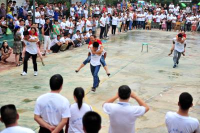 2014年8月26日,三峡工程坝区门户宜昌市夷陵区乐天溪镇为期三天的第九届文化节开幕,当地1000多名三峡工程移民群众参与到“背媳妇”、“同心协力”、“扛化肥”、“摩托车慢骑”、“健身腰鼓”、“拔河”、“垂钓”、“包饺子”、“厨艺”等20多个项目中对垒竞技、一展身手,享受趣味运动带来的乐趣,展现三峡移民群众的全新精神风貌。